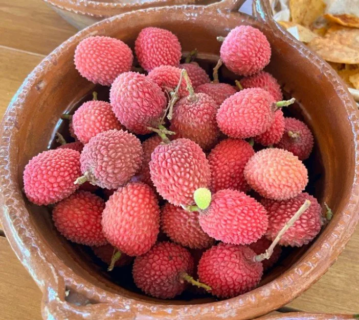 Back at the main house, Boors returns with an earthenware bowl piled high with fresh lychees.