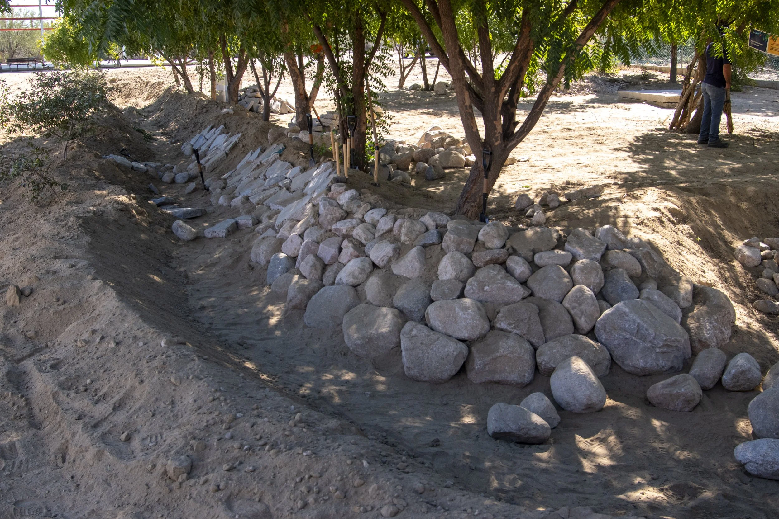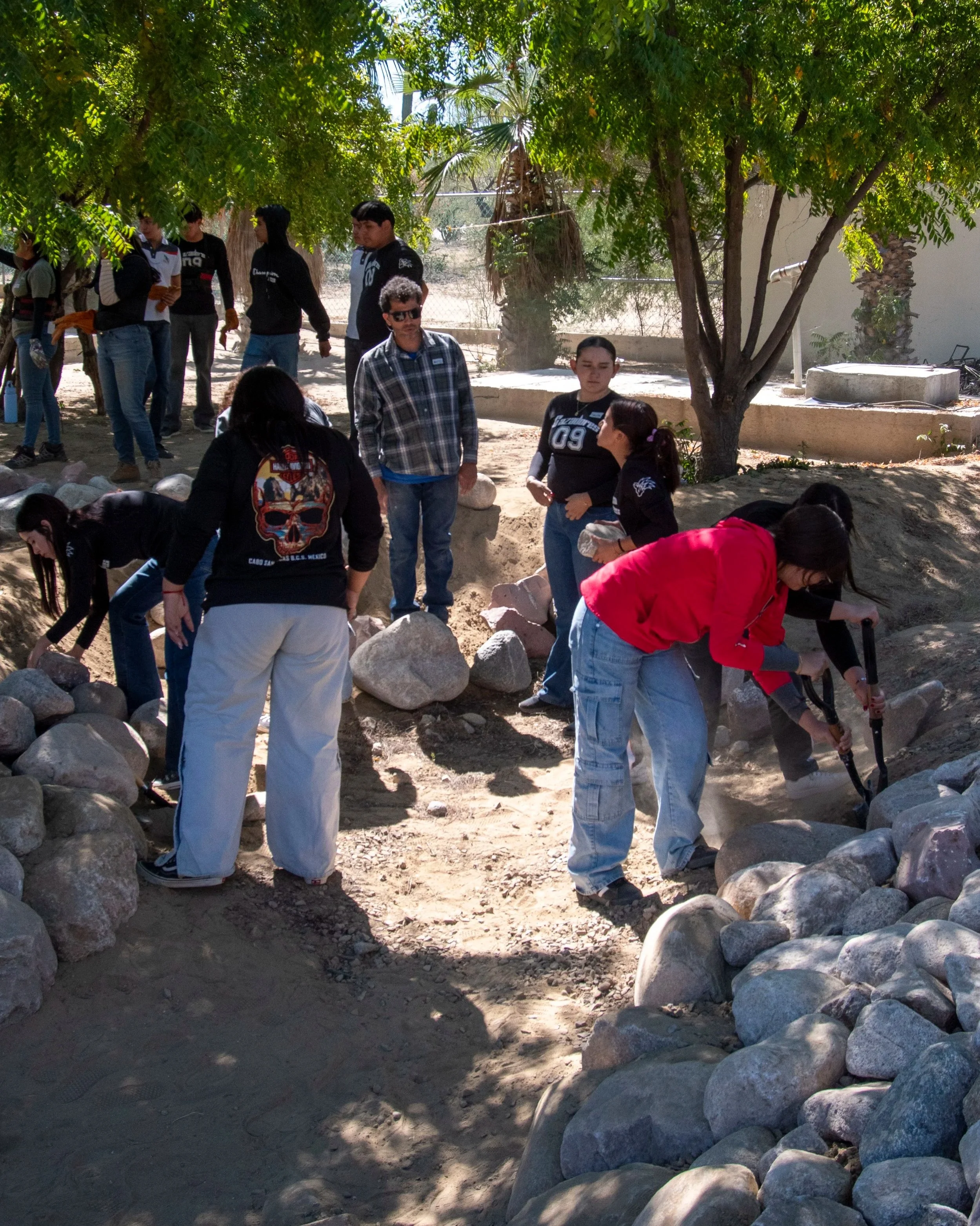 Students at Los Planes High School Lay Stones for the High School’s Water Recapture System