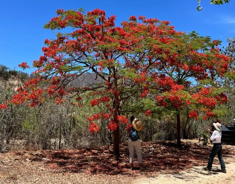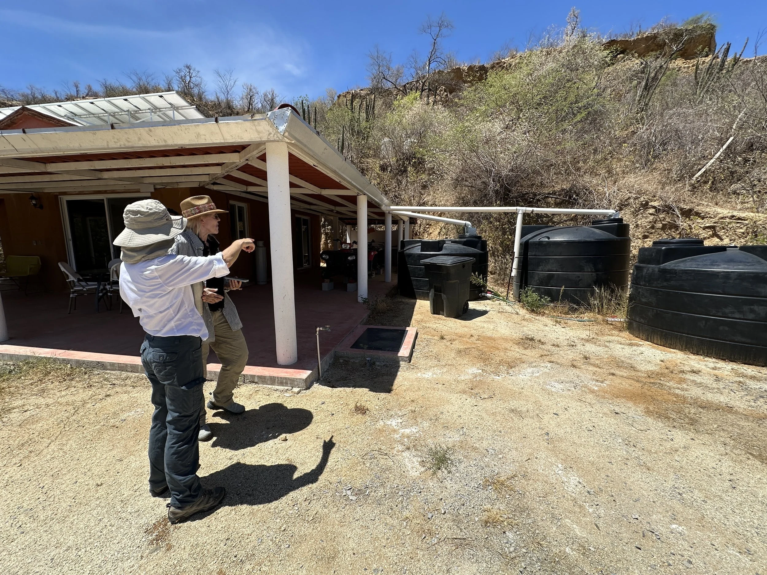 When Paulina Godoy Aguilar, Program Director for the Baja Coastal Institute (BCI); Frida Sanchez, Luna, Education and Research Assistant, and I arrive from La Paz, we see beyond the driveway trees heavy with fruit, irrigated with water collected and harvested during the brief rainy season and stored in a cistern that Robinson Bours and her team have dug as part of a water-recapture cistern on the property.