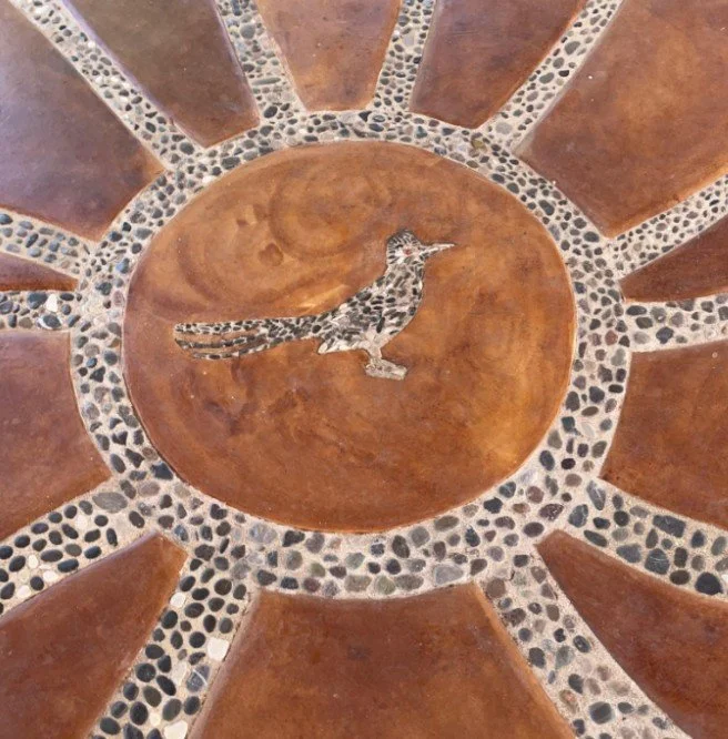 Roadrunner Mosaic Marking the Center of Robins Bours’ Pavilion Cistern